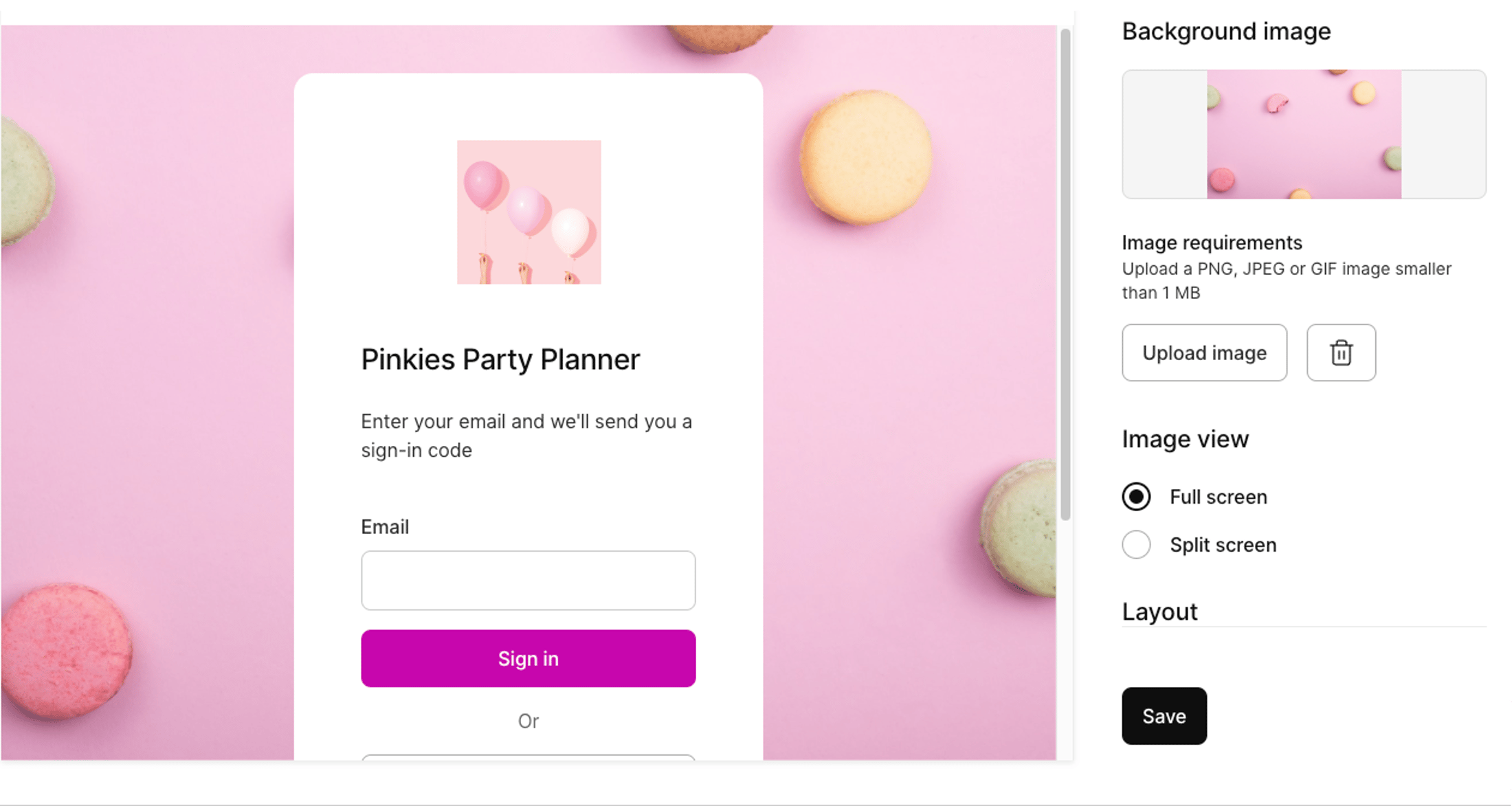 ℹ️ If the background image you choose appears cut off or too short in the preview even after you hit Save, it could be a CSS bug. Check how it looks in your live or test environment, where it should be fine. Let us know if you’re having issues.